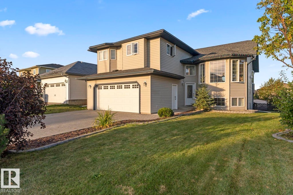 This 1400 square ft Hailey in Lakewood not only has lake views but the massive yard has a 3 tier deck, shed & is completely fenced (chainlink w/ privacy slats).There is also an oversized access gate to the back yard for boats or RV.The driveway greets you w/ stamped concrete and a lush border of perennials. HUGE entrance with tile flooring & coat closet.Main floor has hardwood flooring, 3 way fireplace, NEW UV filter blinds & vaulted ceiling. Eat up kitchen island, corner pantry and stainless steel appliances. 2 bedrooms on main level with a 4 piece bathroom. Primary bedroom features 4pc ensuite bathroom with heated floors, jetted soaker tub and walk-in closet. A/C installed in 2023. Walkout basement features 9' ceilings, in-slab heat and is almost fully developed (no ceiling) with 2 additional bedrooms, 3pc bathroom and large family room. Additional upgrades:microwave & stove 2025,furnace 2024,paint 2025.Attached double car garage.