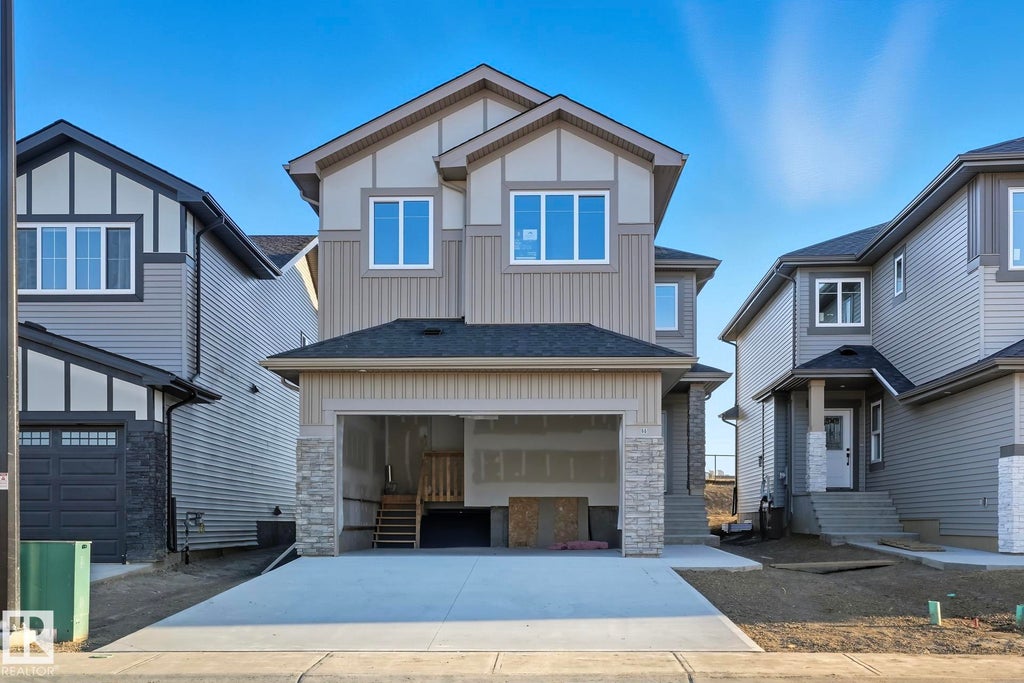 Experience this beautiful New Era home backing onto open space with no rear neighbors—perfect for those who value privacy and modern living. Designed with an open-concept layout, this home boasts 9' ceilings on both the main and basement levels, along with a striking open-to-above great room featuring an electric fireplace and custom feature wall. The main floor includes a flexible den or potential fourth bedroom, a convenient half bath, and a chef-inspired kitchen with quartz countertops and full-height cabinetry. Upstairs, you’ll find a spacious bonus room with a tray ceiling, three d bedrooms, and a laundry room that connects directly to the primary ensuite for added convenience. The primary suite showcases dual sinks, a freestanding soaker tub, and a tiled shower. Additional highlights include a side entrance, tankless gas water heater, MDF shelving, and an unfinished basement ready for your personal touch. Finishes may differ from photos. MOVE IN READY!